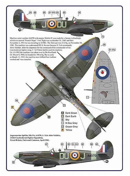 AML - 1/72 Alois Vasatko - 1st Commander of Czechoslovak Wing RAF Decal sheets in 1/72 scale. Colour camouflages for 8 decal versions in