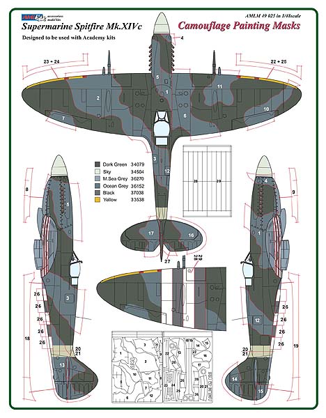 AML - 1/48 Supermarine Spitfire Mk.XIVc camouflage paint mask (designed to be used with Academy kits