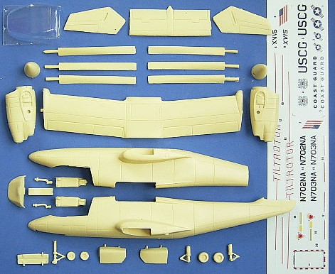 Anigrand Craftswork - 1/72 Bell XV-15 Tiltrotor. In 1965, U.S. Army issued a proposal request for an aircraft that would have both helicopter and airplane characteristics to replace the Boeing CH-47 helicopter and C-7 transport. Bell submitted the tilt-rotor design but the request was dropped in 1968. Bell decided to continue the development as the civil Vtol transport. In 1970, a full size rotor and rotating mechanisms were tested at the Nasa wind tunnel. It led to Nasa and Army interesting, and jointed to fund the program with two research aircraft, designated XV-15. Its configuration was a pair of turboshaft engine mounted at main wing tip. The nacelle could tilt through 90 degree for Vtol and cruise flight. First flight was tested in 1977. Handling was judged as easier than helicopter. In 1980's, Navy, Marine Corps and Coast Guard also jointed the test program. Flight testing continued until 2003. It had accumulated a total of 530 flight hours and was flown by over 185 pilots.