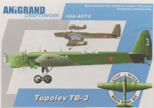 Anigrand Craftswork - 1/144 Tupolev TB-3. The world's first 4-engined monplane bomber. Includes Bonus kits of the Polikarpov I-16, Polikarpov I-5 and Grigorovich I-Z. In 1925, the Soviet Air Force approached the Central Aerohydrodynamic Institute with a requirement for a heavy bomber with total engine output of 1,970hp. Tupolev Okb was selected to start design work in 1926. The mock-up was approved in 1929, and was given military designation TB-3 and civilian designation ANT-6. In 1931, the Soviet Air Force approved mass production of TB-3 after the first prototype made its maiden flight successfully. The first pre-production TB-3 flew in 1932. However, subsequent production aircraft were found to be heavier than the prototype which significantly hampered performance. It was planned to withdraw from service in 1939. With outbreak of the World War II, the TB-3 was deferred as a night bomber and cargo/paratroop transport. The TB-3 was also used in a special project as a fighter mothership in the Zveno projects, different combinations of the I-16, I-5 and I-Z fighters and were attached to the fuselage and wings to provide the bomber with its own self-defenece capacbility. One squardron of these strange Zveno aircraft saw service during the War.