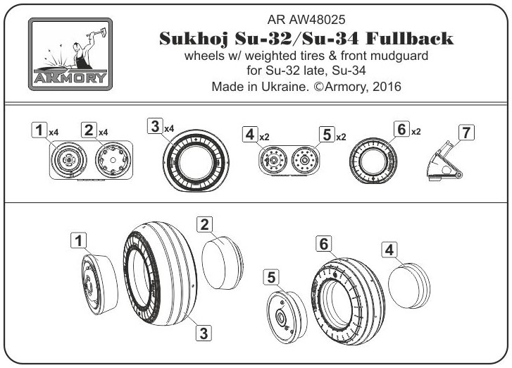 1/48 Sukhoj Su-32/34 wheels w/ weighted tires Su-32 late, Su-34