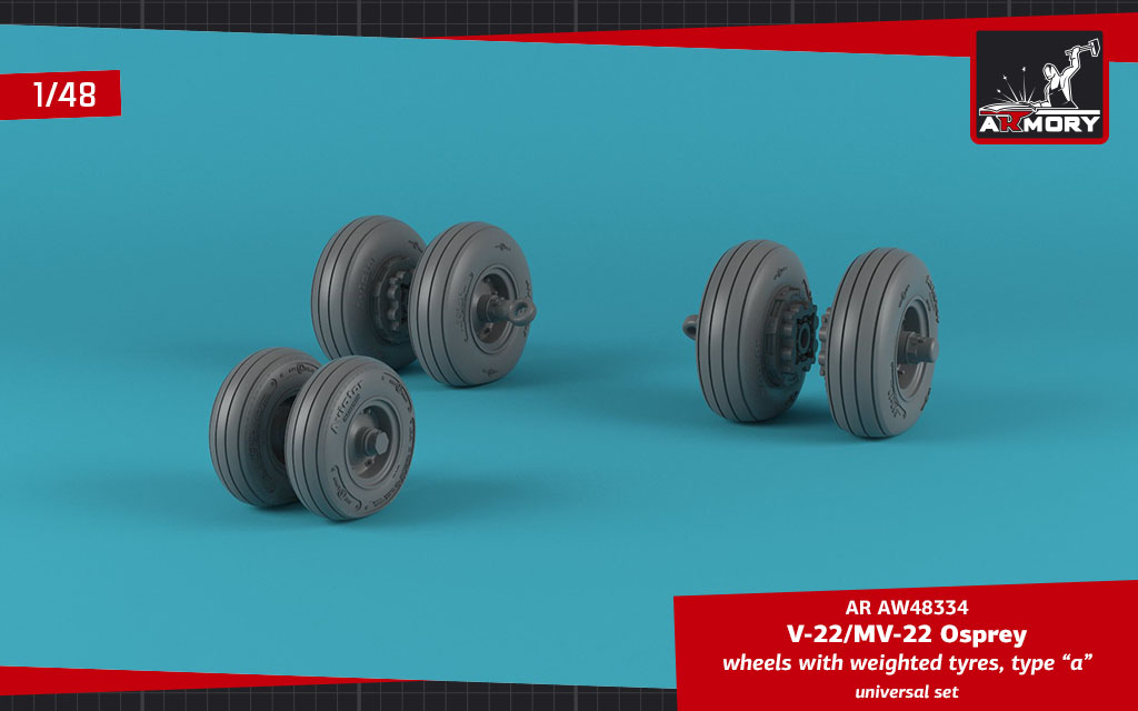 Armory - 1/48 Bell-Boeing V-22/MV-22 Osprey wheels with weighted tires type a (for Hobby Boss, Italeri and Testors kits)