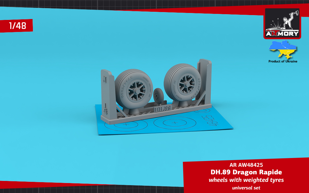 Armory - 1/48 De Havilland DH.89A Dragon Rapide wheels with weighted tyres for Armory