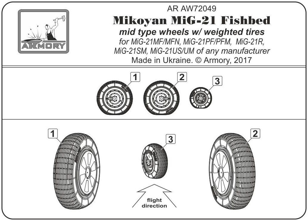 Armory - 1/72 Mikoyan MiG-21 Fishbed wheels w/ weighted tires, mid for MiG-21MF/MFN, MiG-21PF/PFM, MiG-21R, MiG-21SM, MiG-21US/UM