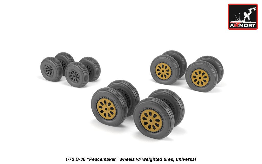 Armory - 1/72 Convair B-36 Peacemaker resin wheels with weighted tires (for Monogram kits)