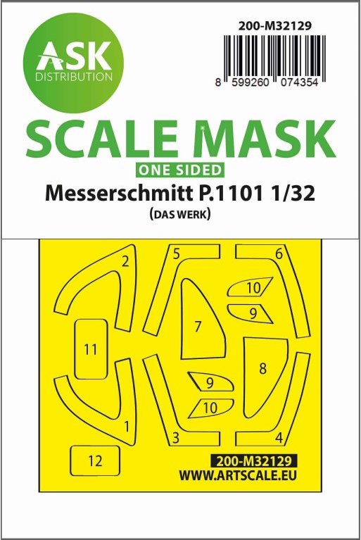 Art Scale - 1/32 Messerschmitt P.1101 single-sided express fit mask for Das Werk