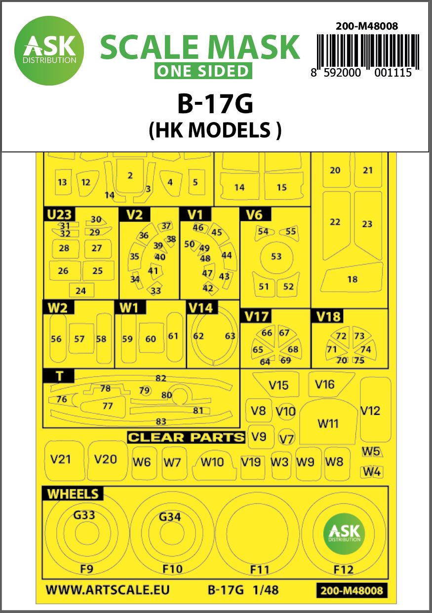 Art Scale - 1/48 Boeing B-17G Flying Fortress wheels and canopy masks (inside only) (for Hong Kong)