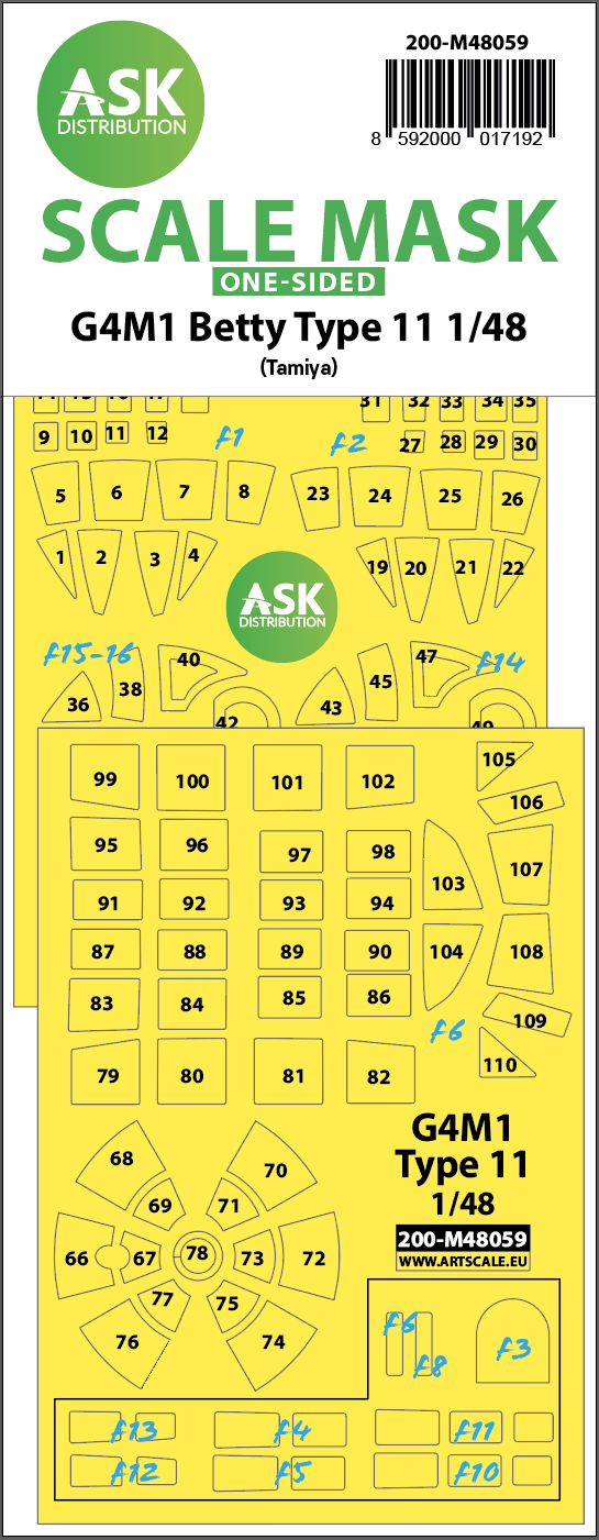 Art Scale - 1/48 Mitsubishi G4M1 Betty Type 11 single-sided express mask (for Tamiya kits)