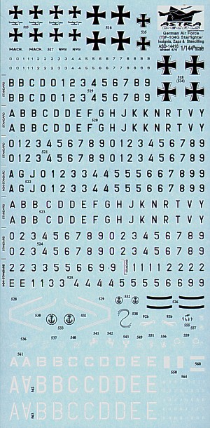 Astra Decals Set für Lockheed F-104G Starfighter der deutschen Luftwaffe im Maßstab 1/144.
