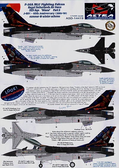 Astra Decals F-16A MLU RNLAF 323 Sqn 'Diana' 1/144
