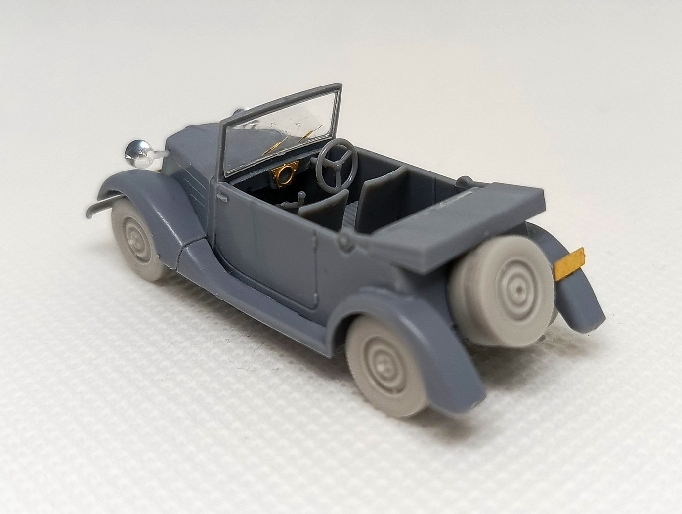 This version of the army convertible was originally designed for driver training. It differed from the standard version by a shortened rear end and an unconventional placement of the rear reserve wheel. During the war it was reportedly used by the Slovak Army on the Eastern Front. The kit contains colour schemes for both the pre-war Czechoslovak Army and the Slovak Army cars serving on the Eastern Front.