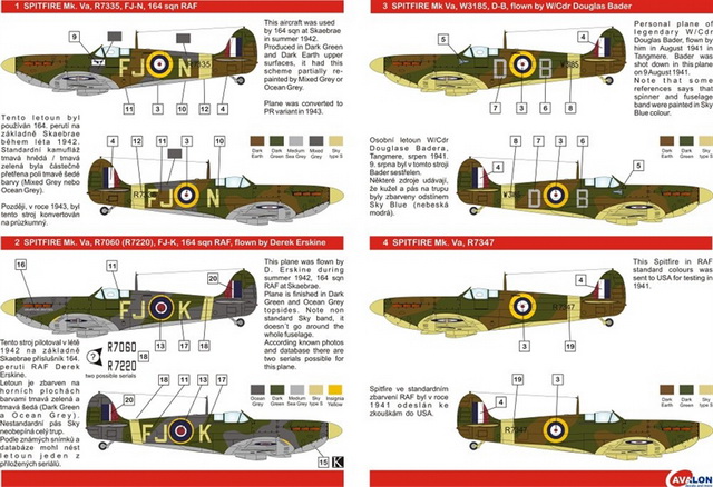 Avalon - 1/48 Spitfire Mk.Va Rare Bird P.1 (4x versions)