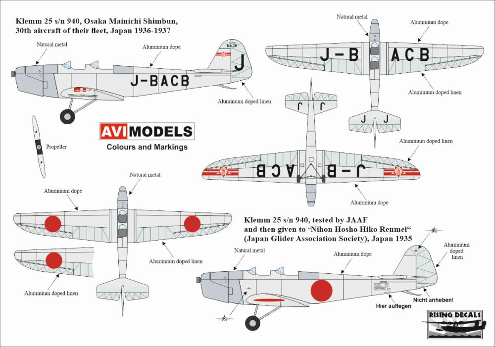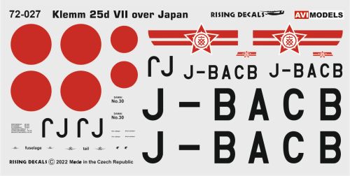 AVIPRINT DECALS - 1/72 Klemm 25d VII over Japan, 1935-1937 (2x camouflages)