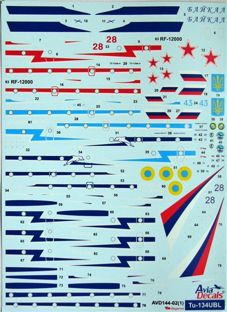 AVIA DECALS - 1/144 Decals Tu-134 UBL & paint mask (ZVE)
