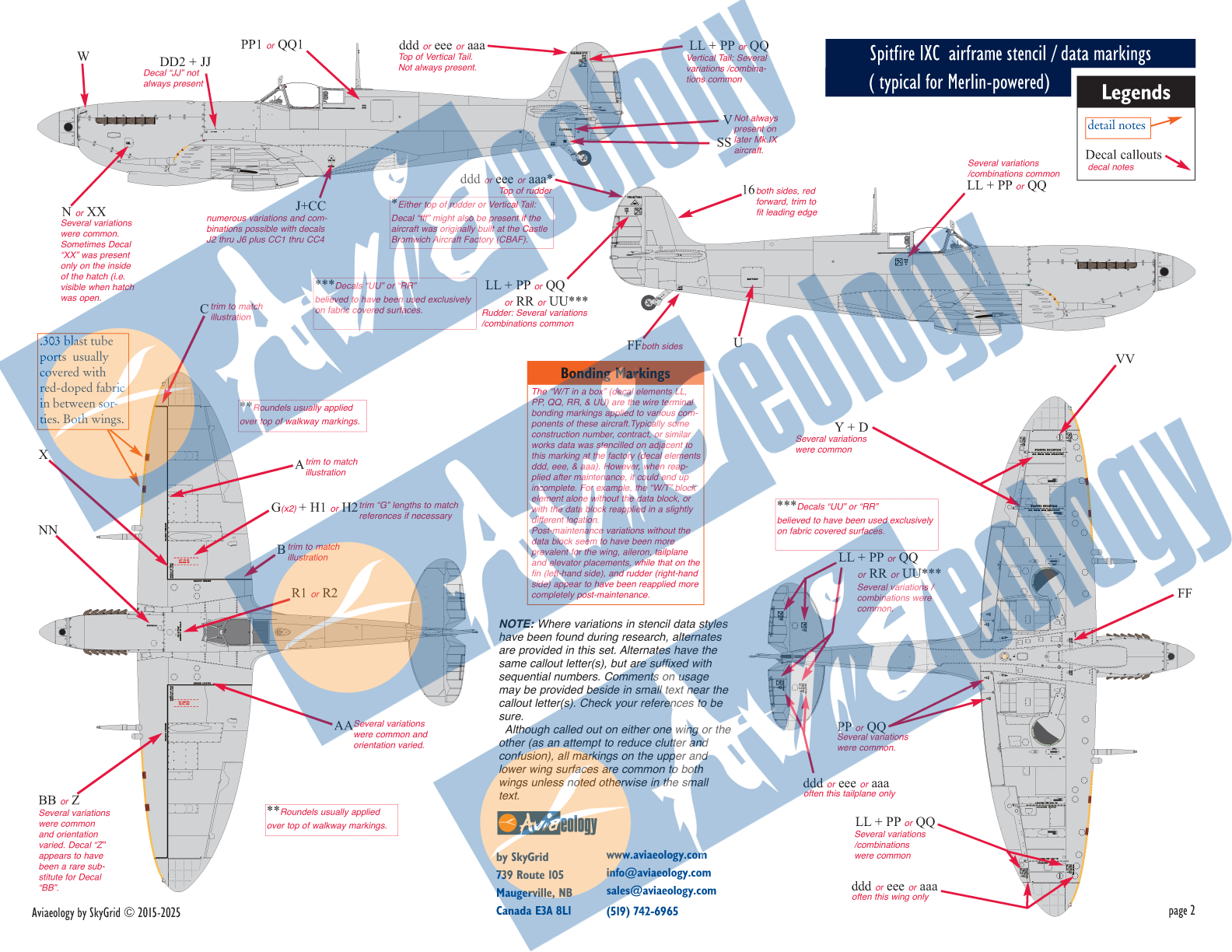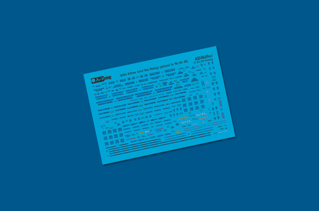 Aviaeology - 1/48 Supermarine Spitfire airframe stencil/data markings Mk.VIII & later , replaces AOD48s09