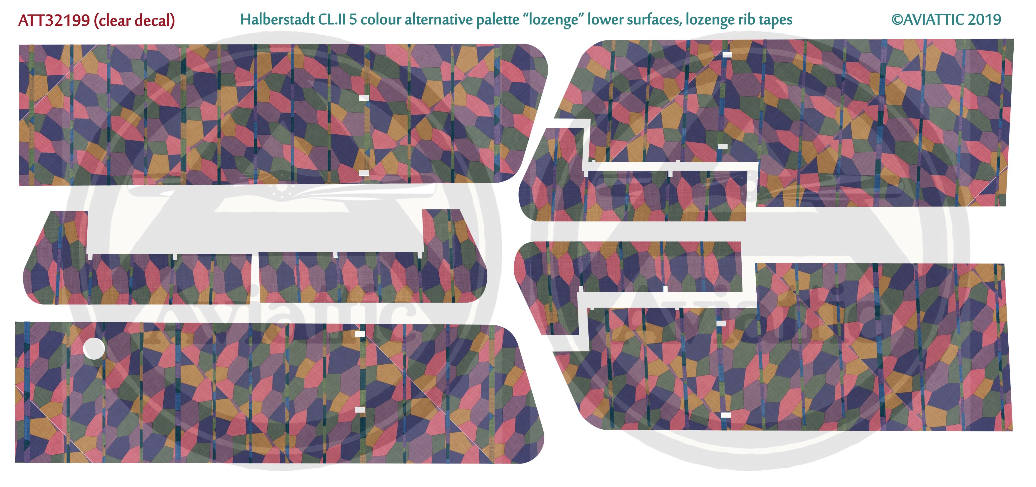 Aviattic - 1/32 Halberstadt CL.II 5 colour alternative palette lozenge upper surfaces with lozenge rib tapes (Clear decal paper)