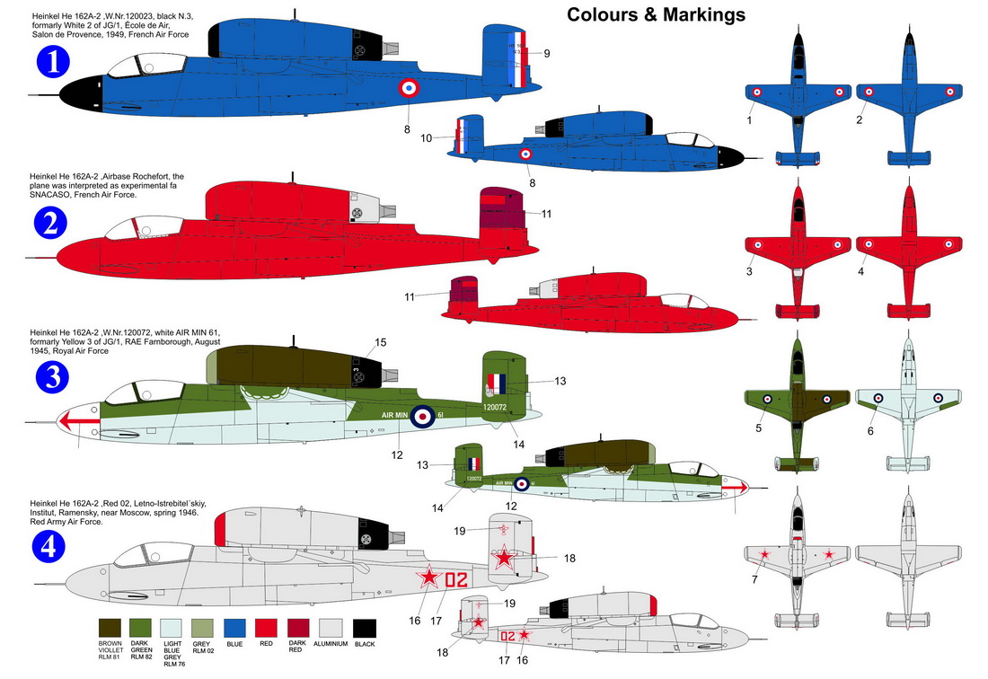 AZ MODEL - 1/72 Heinkel He 162A-2 Post War (4x camouflages)