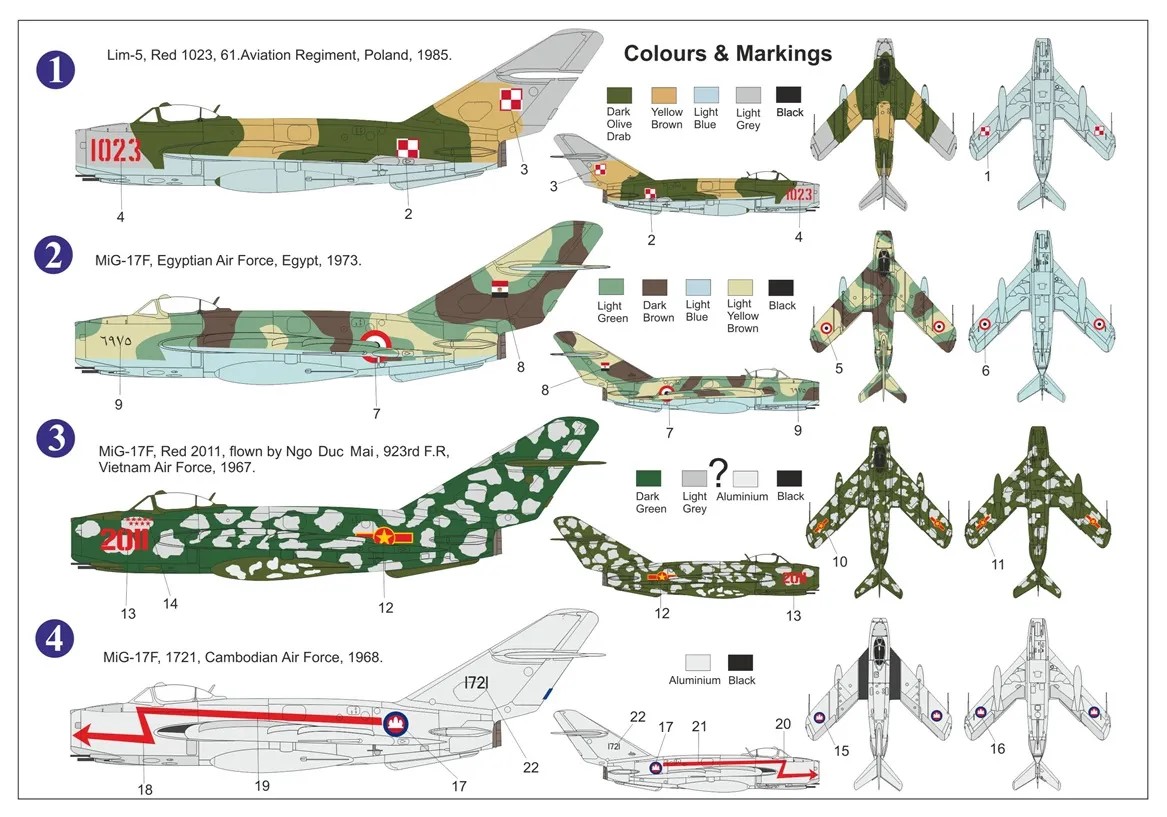 AZ MODEL - 1/72 MiG-17F / Lim-5 3x camouflages
