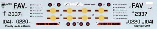 Aztec-Decalbogen für venezolanische Lockheed-Martin F-16 in Tarnung Dunkelgrün / Hellgrün / Sand / Grau.