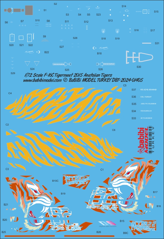 Babibi Models - 1/72 Lockheed-Martin F-16C Fighting Falcon Nato Tigermeet 2015-2016-2022 Anatolian Tigers