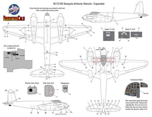 Barracuda Studios - 1/72 Mosquito Airframe Stencils - Expanded