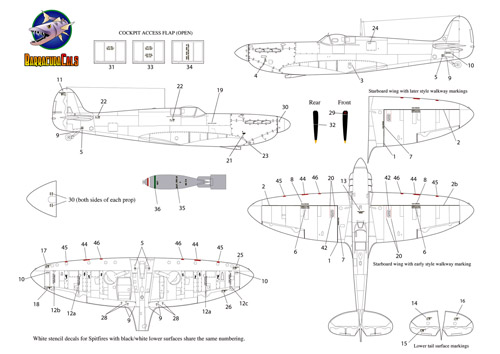 1/72 Spitfire Early Mark Airframe Stencils