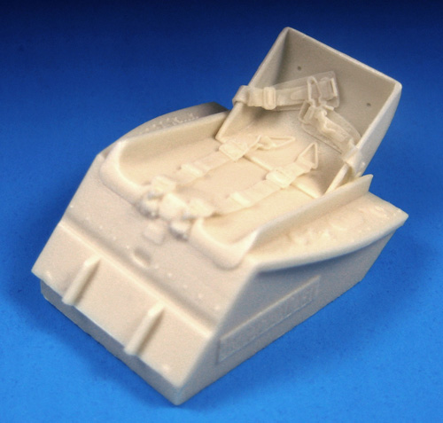 Barracuda Studios - 1/32 Messerschmitt Bf 109G-2 Thru G-10 Seat with Belts. This set consists of a super detailed Bf 109G type seatpan & rear bulkhead with molded in harness to replace kit seat in Revell Germany's 109G kits. The accurate molded in harness has strong relief and great detail, making it easy to paint. For those of you who don't enjoy fiddling with tiny brass belts or trying to feed even tinier buckles onto foil or fabric belts. Paint it up and your done! It may also be adapted to fit other kits. Master pattern by Mike Kirchoff and Roy Sutherland.