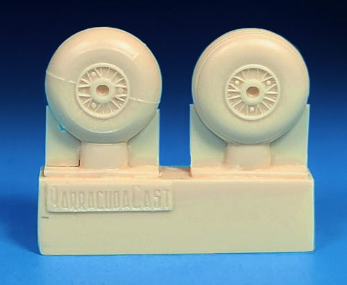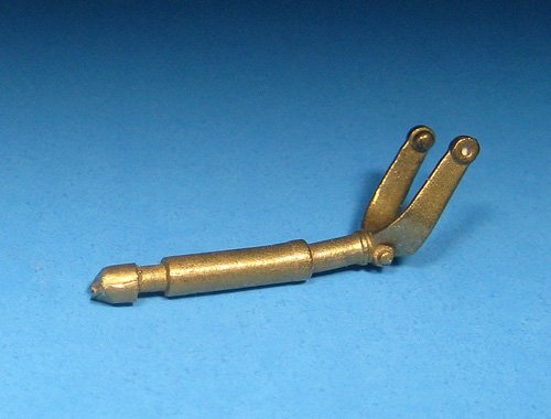 This set contains one accurate and very strong lost wax cast brass tall tail strut and two styles of detailed tailwheels in resin, both smooth and radial tread tire versions. This brass strut will not bend over time like white metal can. Can be fit to all late model Bf-109G/K kits in 1:32 scale. A quick and easy upgrade that will assure no more broken tailwheels. Designed by Gunnar Jannson.