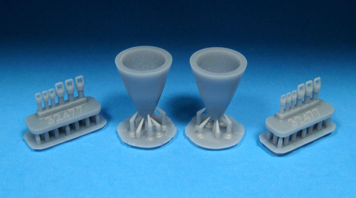 The Aero 1D 300 gallon tanks were widely used, and were carried in this configuration by all variants of the Skyhawk as well as the F4D Skyray. This set consists of a pair of highly accurate and detailed 3D printed droptanks, complete with separate shackles for mounting to pylons. Drop tanks are printed hollow, so they will not weigh down an already large and heavy model. These tanks replace the inaccurate and less detailed tanks found in most 1/32 kits. Master pattern by Kerry Carlyle, with research by Craig Sargent (for Hasegawa and Trumpeter kits)