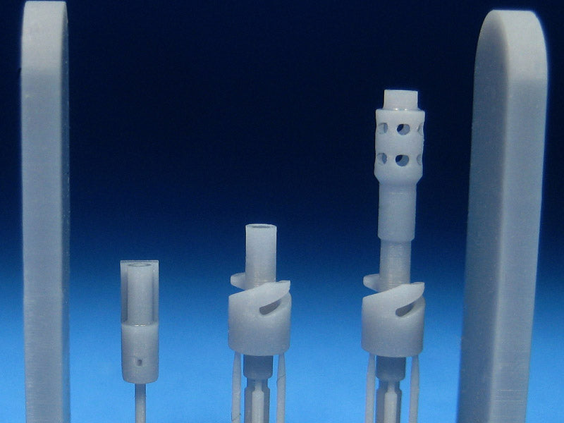 set contains one each super detailed, 3D printed NS-37 37mm cannon barrel and an NS-45 45mm cannon barrel with muzzle brake. Also included is a hollowed out barrel for the cowl mounted machine gun. Designed specifically for the 1/32 Icm Yak-9T and Yak-9K. A simple upgrade that adds a lot of cool detail where it counts. Designed by Mike Swinburne.