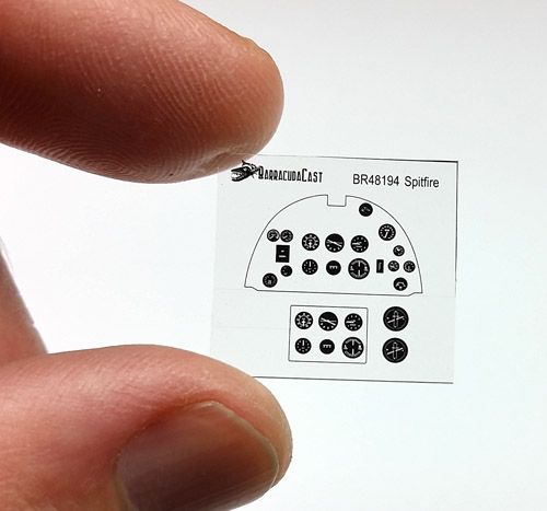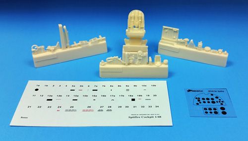 Barracuda Studios - 1/48 Supermarine Spitfire Mk.IX snapshot cockpit upgrade. (designed to be used with Eduard kits) For the Eduard Spit Mk.VIII and IX kits. This set includes all the hero parts. Seat with belts, stick, throttle, gunsight, retract quadrant and other detail parts, plus a sheet of cockpit stencil decals and a new film dial with much improved instrument dials for the panel. Quick and easy to install. [Mk.IXe Mk.IXc]