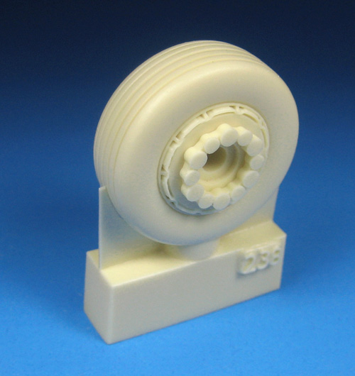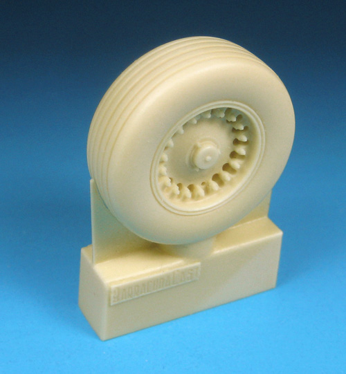 Barracuda Studios - 1/48 Rockwell B-1B Bomber Main and nose wheel set (designed to be used with Monogram and Revell kits) Contains a complete set of accurate and detailed wheels for the B-1B: 2 nose wheels and 8 main wheels superbly cast in resin to improve and replace the problematic rubber/plastic tire assemblies supplied in the kit. A real upgrade over the kit wheels. Designed for the Revell B-1B kit.