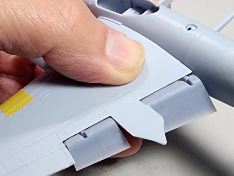 This set Contains 3D printed port and stbd flaps molded in down position. There is a reason that Mosquito model never give you the option of flaps in the down position. It's because they seem to hang in midair when lowered. The connection points seem small and fragile, but Mike has come up with a very clever solution that supplies the inner and outer flap for each wing linked in one piece, easing alignment as well. It's pretty cool, and only requires removing a few ribs inside the wings. Designed for the Airfix Mk Xvi. Cad by Mike O'Hare.