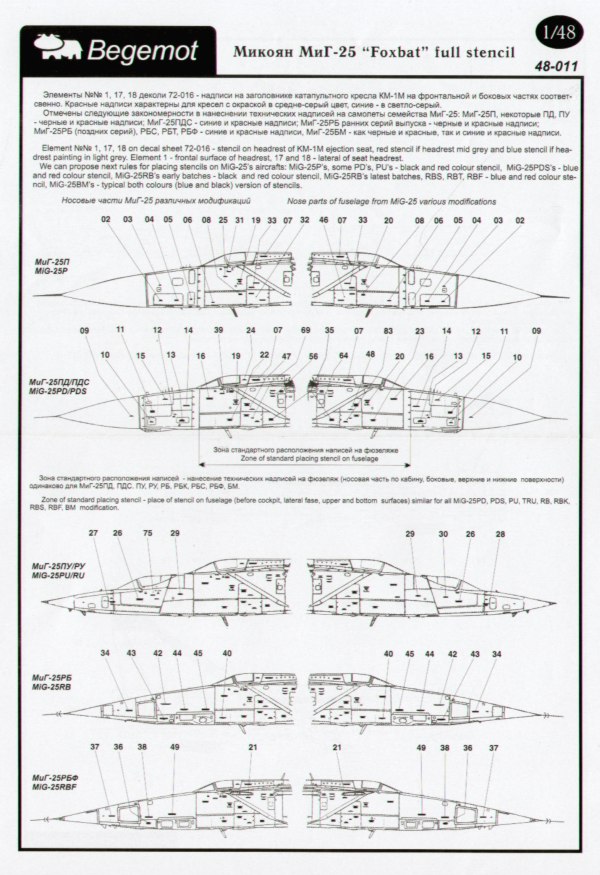 Begemot - 1/48 Mikoyan MiG-25 Foxbat Stencil Data