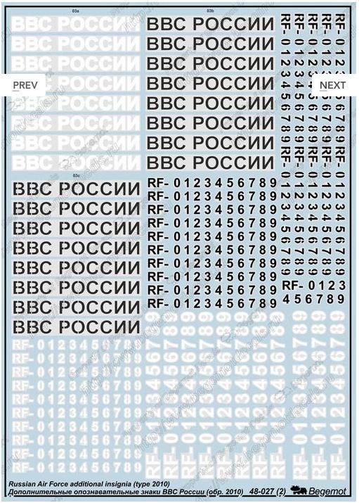 Begemot - 1/48 Additional Russian Air Force insignia (2010)