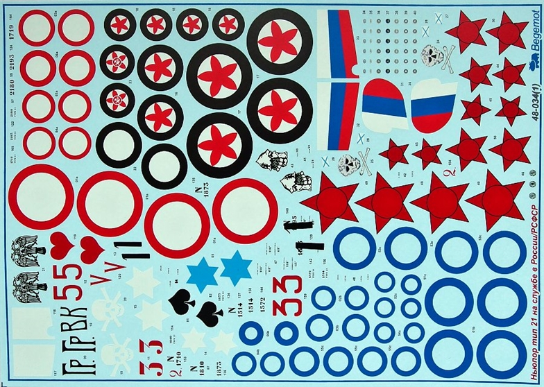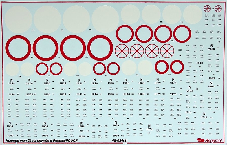 Begemot - 1/48 'Nieuport type 21' Decal include 35 options for the period from 1916 to 1922 Imperial Russian Air Fleet and aircraft of Red and White sides of Civil war.