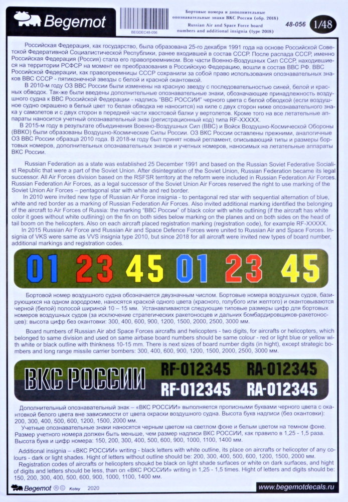 BEGEMOT - 1/48 Russian VKS board numbers & signs (6 sheets) decal