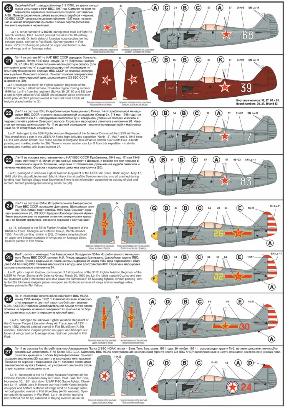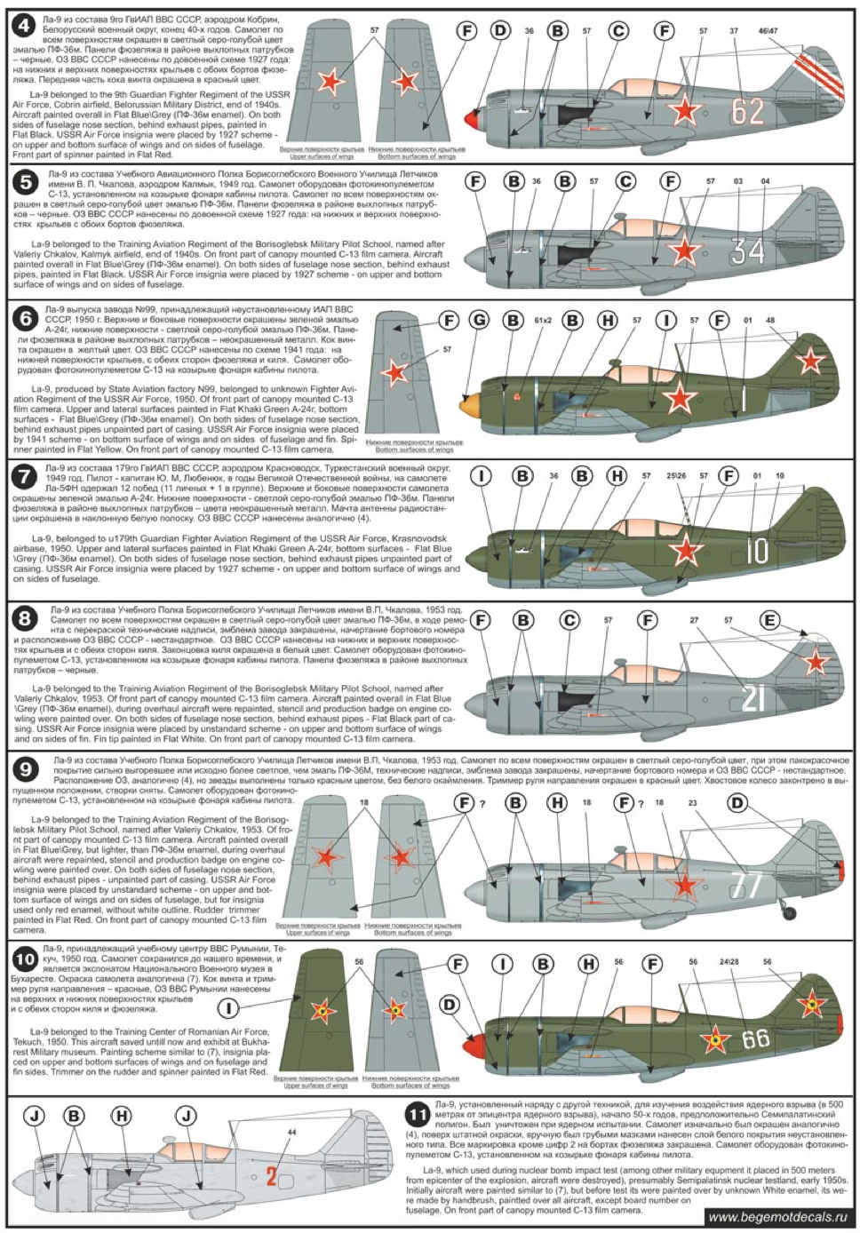 Begemot - 1/72 Lavochkin La-9/La-11 Decal with opportunity make 29 marking variations of La-9 and La-11 family aircraft's all types, from next AF's: USSR, China, North Korea, Romania and Indonesia. 4 sets of full stencil for La-9(11) aircfat included.