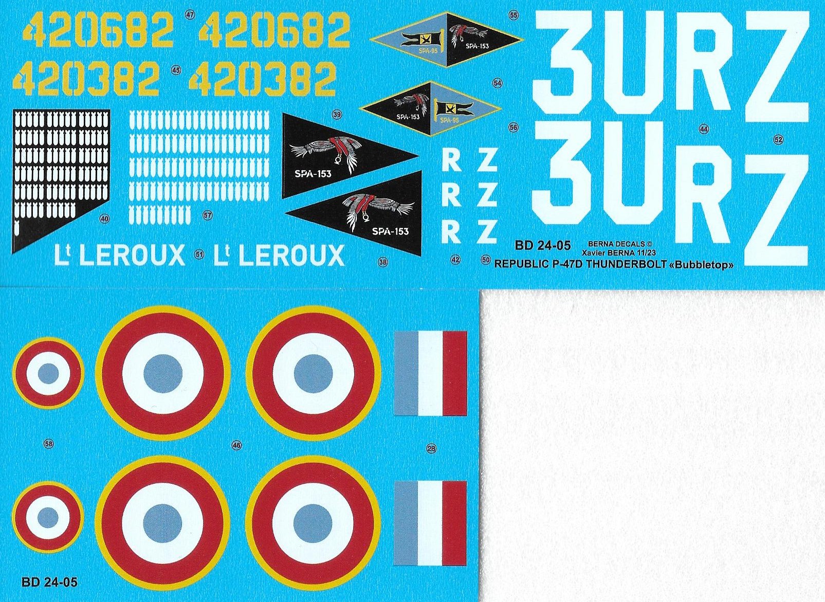 Berna Decals - 1/24 Republic P-47D Thunderbolt Bubbletop French 1944-45: 'Navarre' 2 schemes