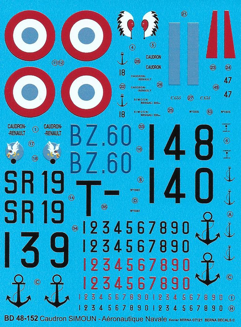 Berna Decals - 1/48 Caudron C.635 Simoun French Aeronavale (3 schemes).