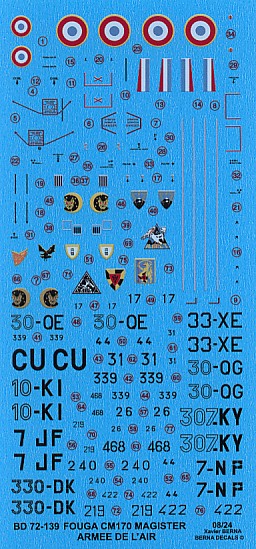 Berna Decals - 1/72 Fouga CM170 Magister Armee de l'air: 9 schemes