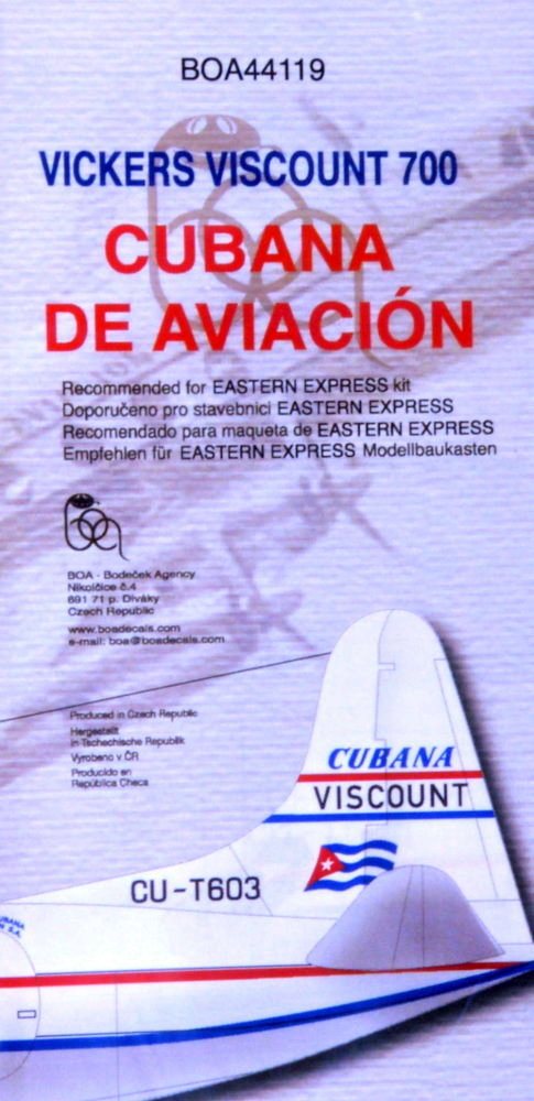 BOA - 1/144 Decals Vickers Viscount 700 Cubana (EAEX)