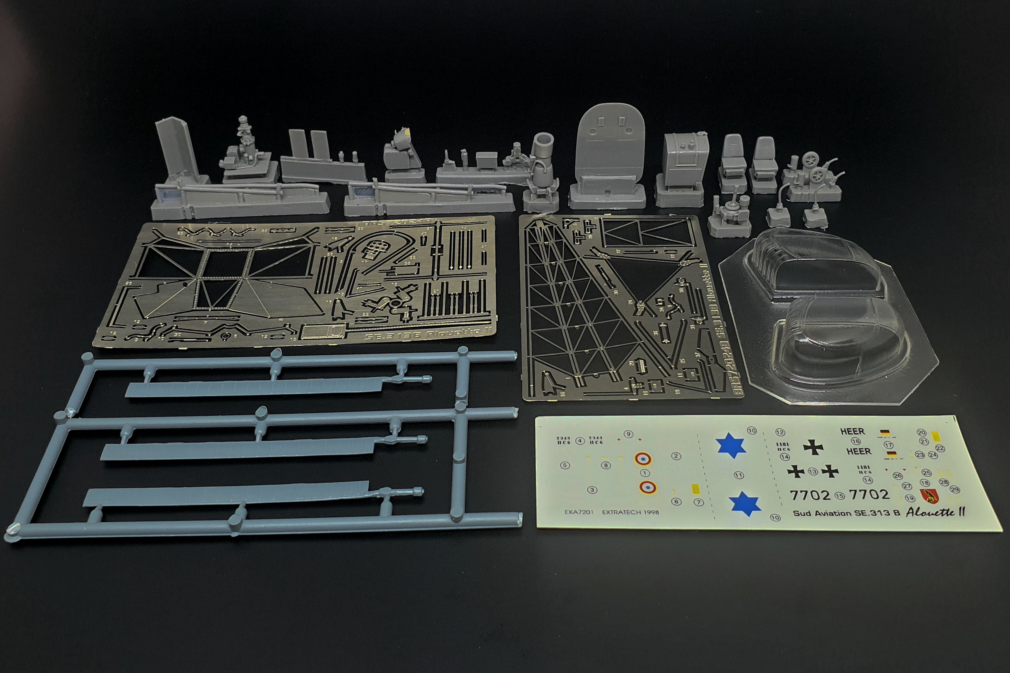 Brengun - 1/72 Aerospatiale Sa 318C Alouette II made of resin, injection plastic, vac formed plastic and etched parts Decals for France, Germany and Israel.