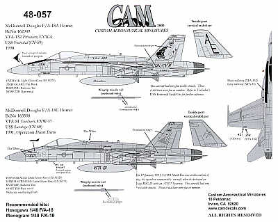 CAM - 1/48 McDonnell-Douglas F/A-18A Hornet McDonnell-Douglas F/A-18C Hornet (2) A 162909 AE/306 VFA-132 Privateers USS Forrestal 1990, C 163508 AA/401 VFA-81 Sunliners USS Saratoga 1991 with Desert Storm kill marking