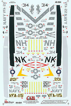 Cam Decals - 1/48 McDonnell-Douglas F/A-18C (2) 164012 NH/314 VFA-22 Fighting Redcocks Uss Carl Vinson 1999, 163440 NK/201 VFA-115 Eagles Uss Abraham Lincoln