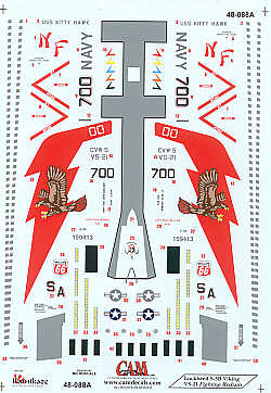 Cam Decals - 1/48 Lockheed S-3B Viking (1) 159413 NF/700 VS-21 Fighting Redtails Low vis overall FS36375/black fin