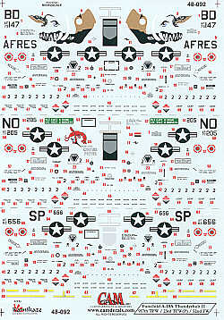 Cam Decals - 1/48 Fairchild A-10A Thunderbolt II (3) 79-0147/BD 917 Tfw Barksdale 1988 AFRES, 77-0205/NO 23 Tfw Desert Storm. Both Euro 1 camouflage, 82-0656/SP 52FW Spangdahlem 1993 grey