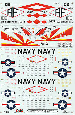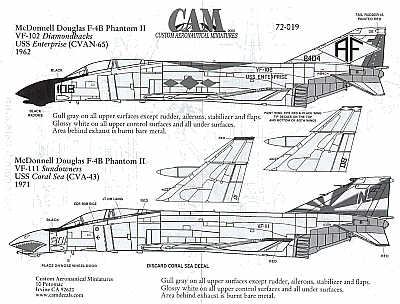 Cam Decals - 1/72 McDonnell F-4B Phantom (2) 148404 AF/108 VF-102 Diamondbacks Uss Enterprise 1962, 153018 NL/201 VF-111 Sundowners Uss Coral Sea shark mouth