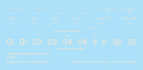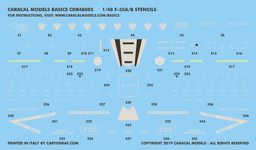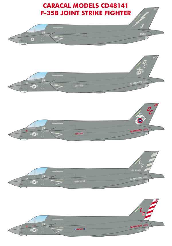 Caracal Models - 1/48 Lockheed-Martin F-35B Joint Strike Fighter Marking options for all F-35B Lightning II operators all Usmc units flying the type, Raf and Italy. Designed for the Kitty Hawk kit.