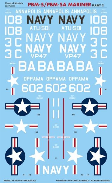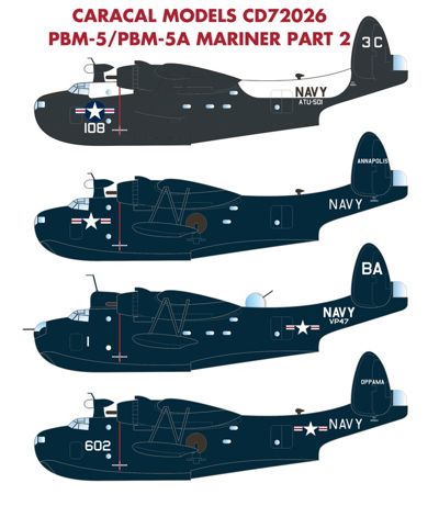 Caracal Models - 1/72 Martin PBM-5/PBM-5A Mariner - Part 2 More US Navy marking options for the PBM-5/PBM-5A Mariner patrol bomber, designed for the new Minicraft kit.